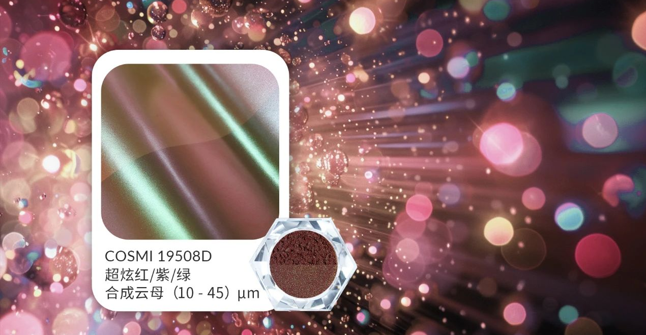 This exceptional hue which shifts between red, purple and green creates an intriguing and fascinat ing impact. The combination of superb chroma with a captivating multicolor effect makes this shimmering pigment stand out.This multicolor pearl pigment is character ized by its remarkable ability to transi tion through three colors depending on the viewing angle. It thus opens up a multi tude of different styling possibilities which allow cosmetic products to shine with a touch of extravagance.